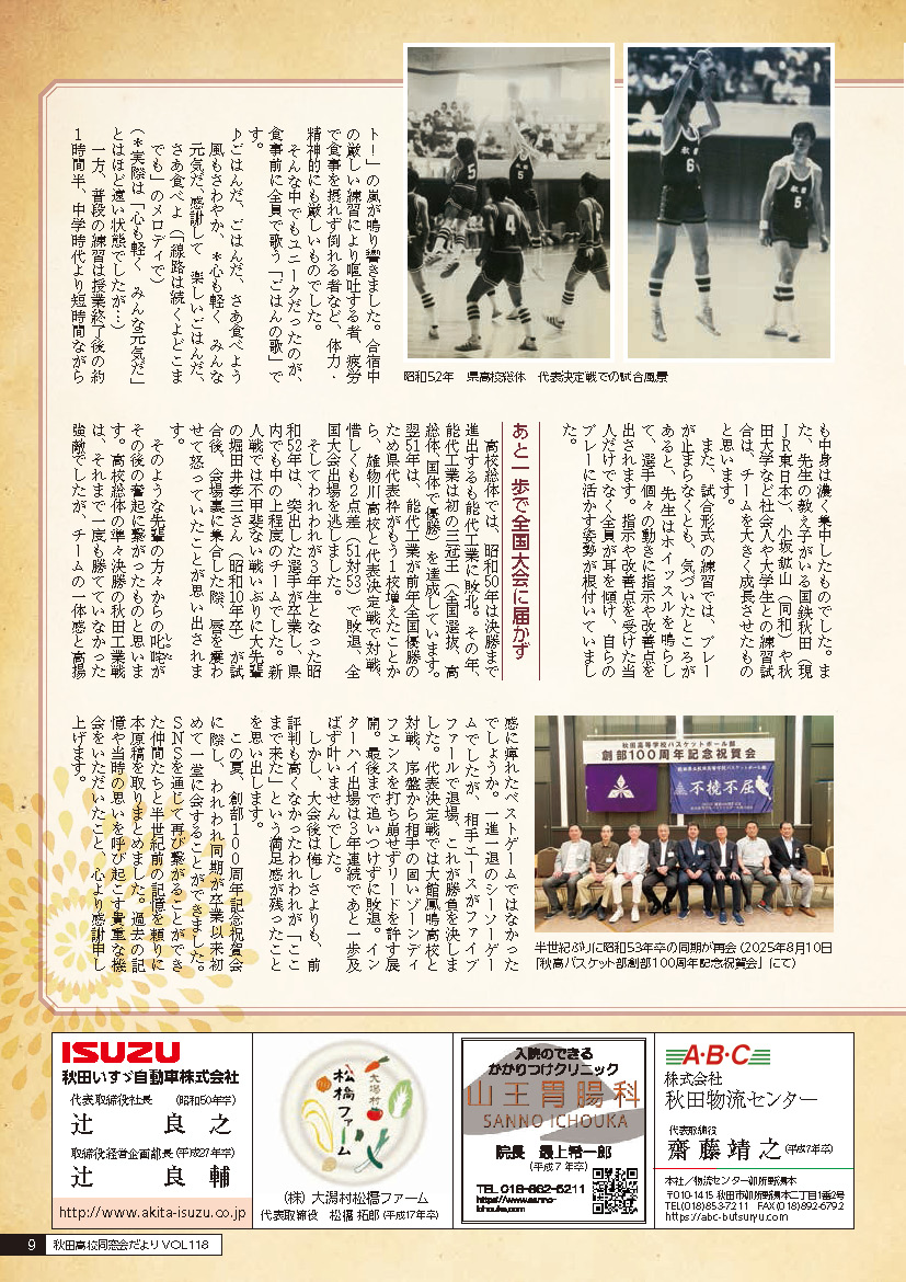 - あの頃の思い出 「創部100周年を契機に(バスケットボール部)」 … 土門 孝文 氏(S53卒)