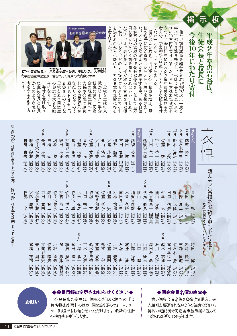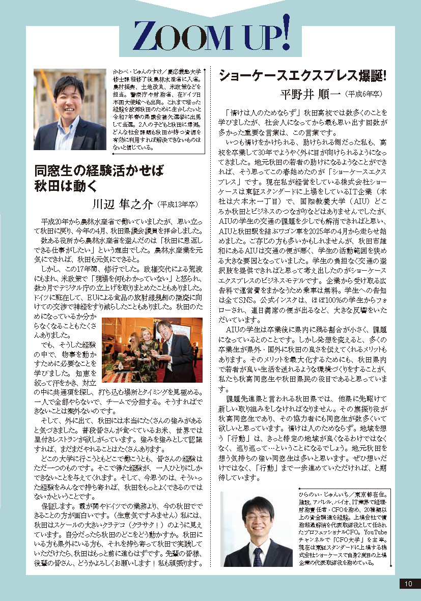- ズームアップ … 平野井 順一 氏(H06卒)、川辺 隼之介 氏(H13卒)