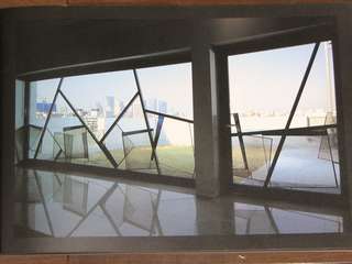 高さ2メートル20センチ、長さ8メートルに及ぶ大きな窓から見える新宿副都心の近代的な風景を切り取って見せるような作品です。