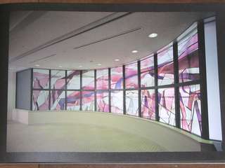 2階ホールの湾曲した部分に設置されたこの作品は、10メートル近い長さがあり、中央に立ったときに見る人を包み込むような印象で作られています。